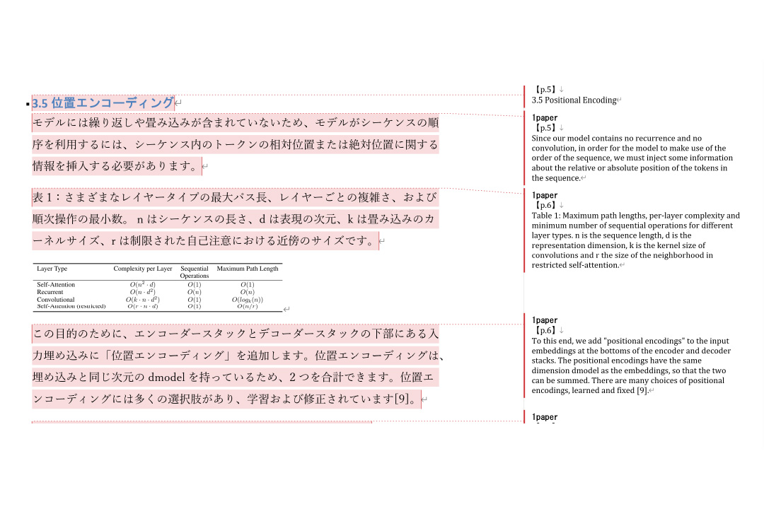 英語原文に立ち戻りたい時、わざわざ元の論文を見返す必要はありません。原文と原文のページ情報は、サイドバーに表示されます。